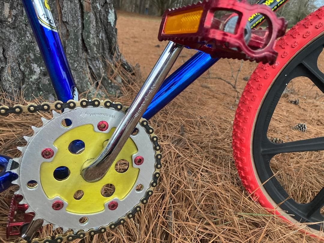 • Premium Components: Equipped with Maurice/Mongoose handlebars, ACS stem, SR P-486 pedals, Sugino CrMo 180 cranks, Tuffnek chainring, Tuffnek center plate, Izumi chain, Kashimax seat, Flute SGV seat post, DiaComp MX seat clamp, this bike combines authenticity with top-quality BMX parts.
