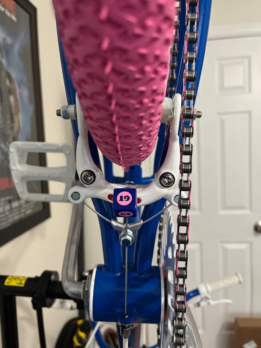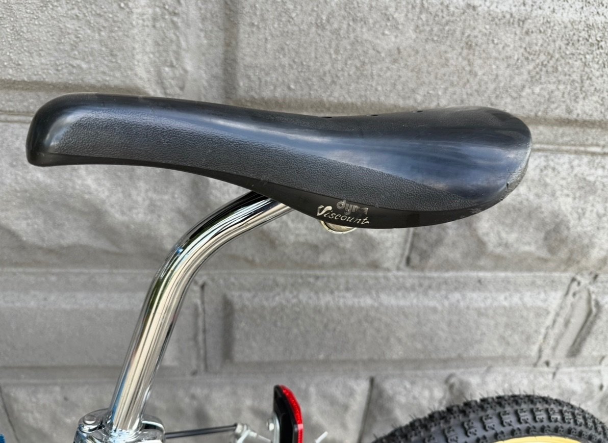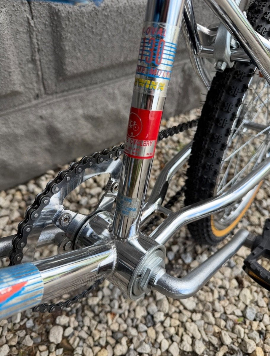 1985 Predator Streetwise. #GO285 Original decals. Original Pro Class wheels, yellow label competition tires. Pro Class MX brakes, front and rear. Mx Lee Chi levers. SR Sakae MS 423 stem. CW style bars, Ame grips. Sugino crank, Sugino spider, SR SP-518 Japan stamped Pedals. Black Dyna Viscount seat. Mx clamp and chrome fluted seat post. Original reflectors, Predator Pad set and owners manual. Super clean survivor. Chrome is beautiful. Pro class brakes