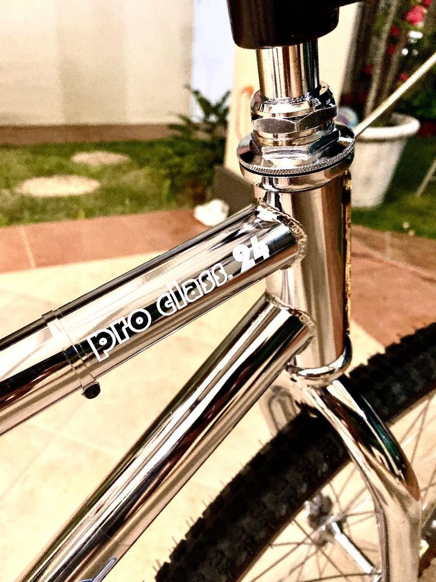 Braking is upgraded with 1999 Odyssey calipers front and rear, offering stronger stopping power while keeping a period-correct freestyle look. Rolling duties are handled by GT Tomahawk mags, featuring a Gen 1 rear and Gen 2 front, paired with original 1990s GT tires that complete the authentic setup. Reproduction pegs are installed for usability without compromising the bike’s overall originality.